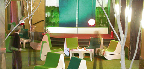 Im Rahmen der Orgatec-Messe 2004 ist in einem historischen Gebäude neben dem Kölner Hauptbahnhof die Orgatec-Lounge errichtet worden. Hier wurde fernab des hektischen Messebetriebs sowohl Messe-Besuchern als auch Ausstellern ein Ort zur Verfügung gestellt, der zum Verweilen und Austausch einlud. Die Verantwortung reichte von der Konzeption über die Produktion bis zur Koordination und Überwachung des Gesamtprojekts.