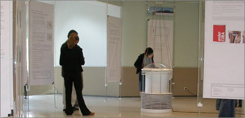 Jede Fakultät der Fachhochschule Köln bekam eine Farbe zugewiesen. Die Kooperation mit anderen Institutionen wurde durch die Schnüre als Vernetzung im Raum symbolisiert.